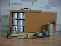 Состоит из двух цилиндров буровых, воронки, бойка, ножа, молотка, лопатки,