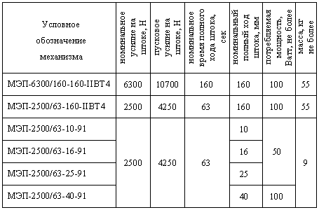 МЭП-2500, МЭП-6300, Механизмы исполнительные электрические прямоходные