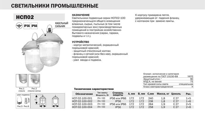 НСП 02, Светильники промышленные