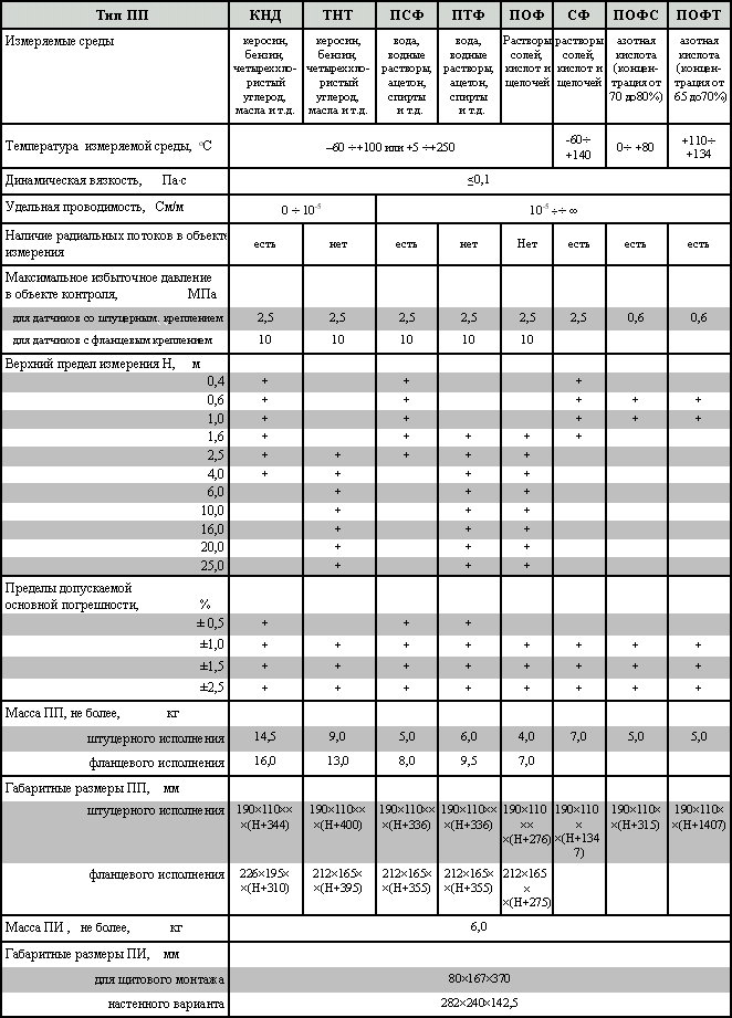 характеристики датчиков уровня ДУЕ-1ИС-Б.