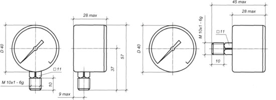 исполнения: осевой штуцер без фланца; радиальный штуцер без фланца
