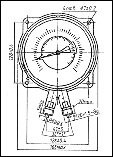 манометрические пружины, два радиальных штуцера и два циферблата, один из
