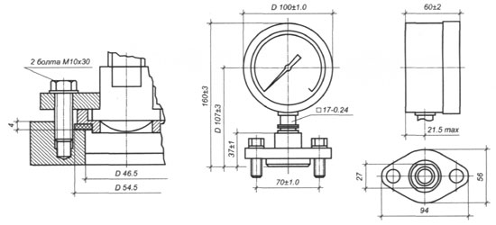 - Габаритные и присоединительные размеры МТП-100/1-ВУМ-