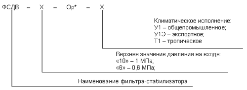 *Указывается только для фильтров-стабилизаторов в коррозионностойком исполнении.